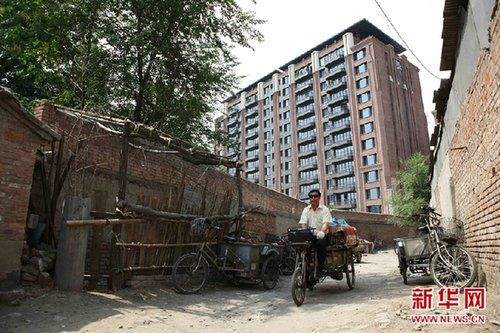 2011年5月25日北京出现单价30万楼盘骑车人从北京东钓鱼台家园小区南面的胡同中经过。分析人士指出,在严厉调控之下,北京豪宅价格逆势异常高涨,十分值得关注。新华社发(李方宇)